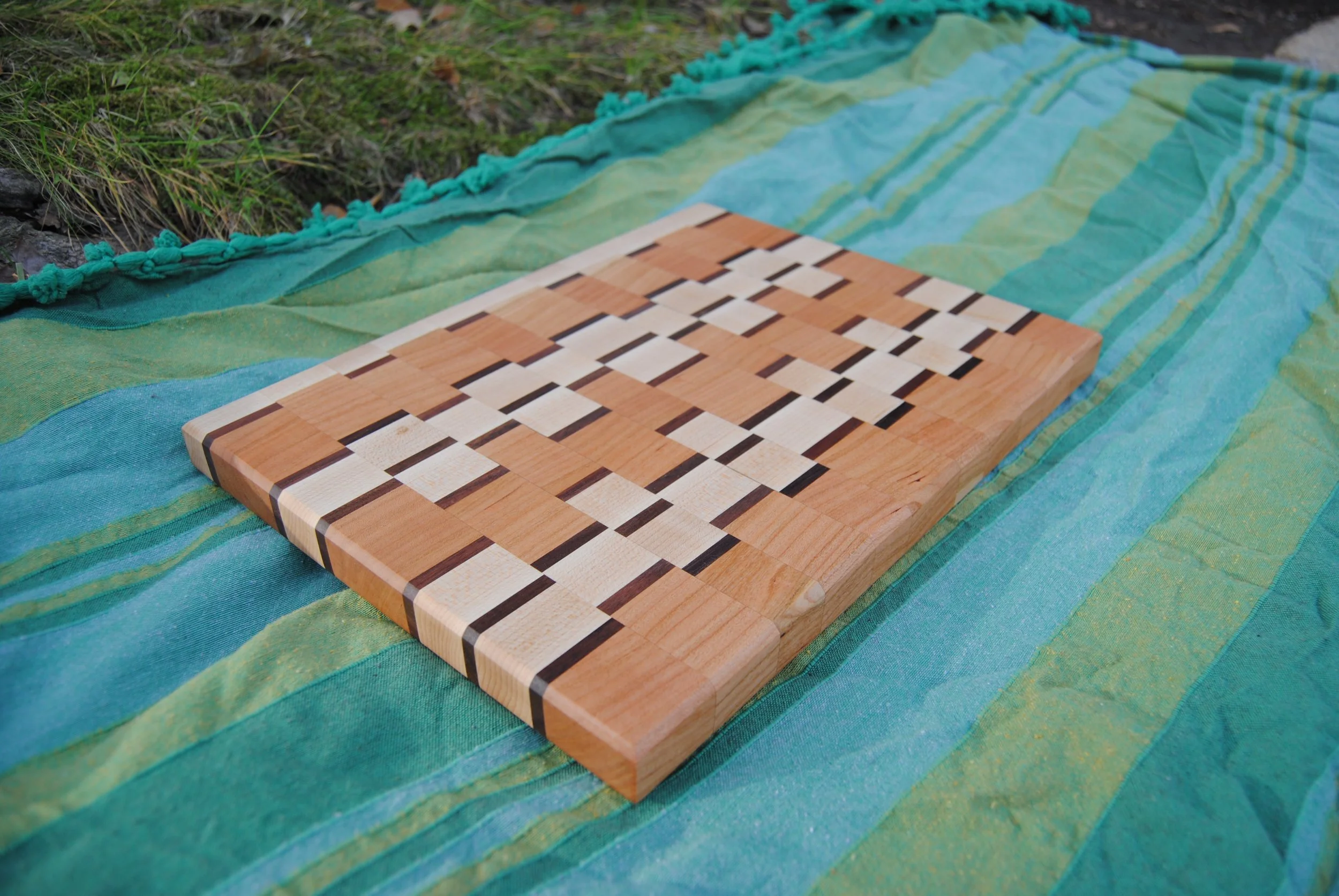This board was based on another cutting board that I originally made for my Aunt Pooh years ago, and then remixed to get this geometric pattern.
